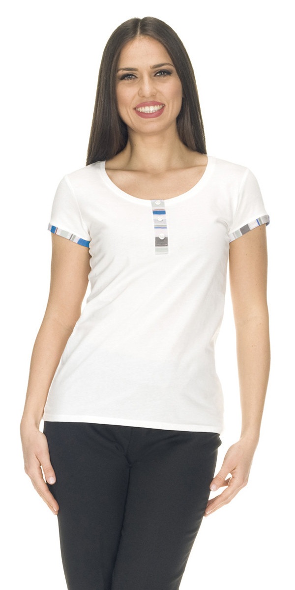 White colour with inserts on the sleeves and on the collar in Blue Spezia Striped